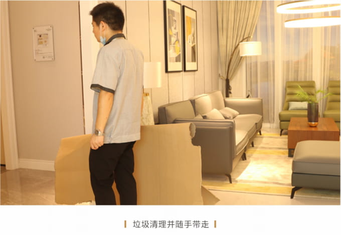 戴上白手套,按顧客要求把貨物搬到指定位置,要求輕抬輕放,嚴(yán)禁在地板上拖、拉、推以免損傷顧客家物品。