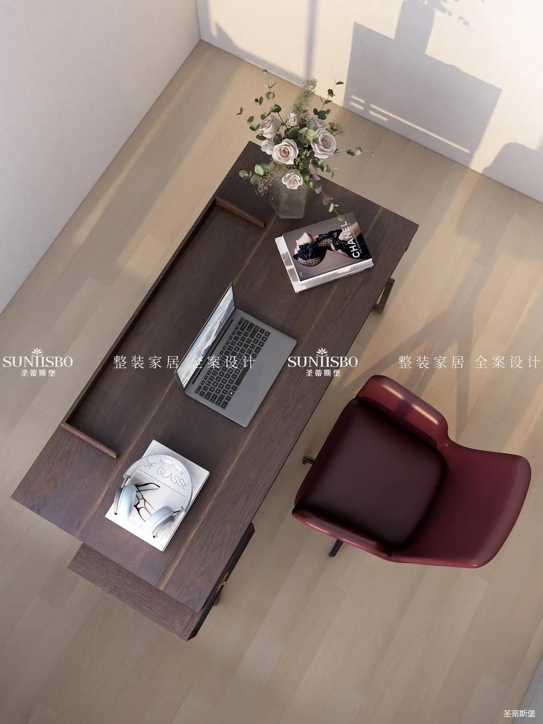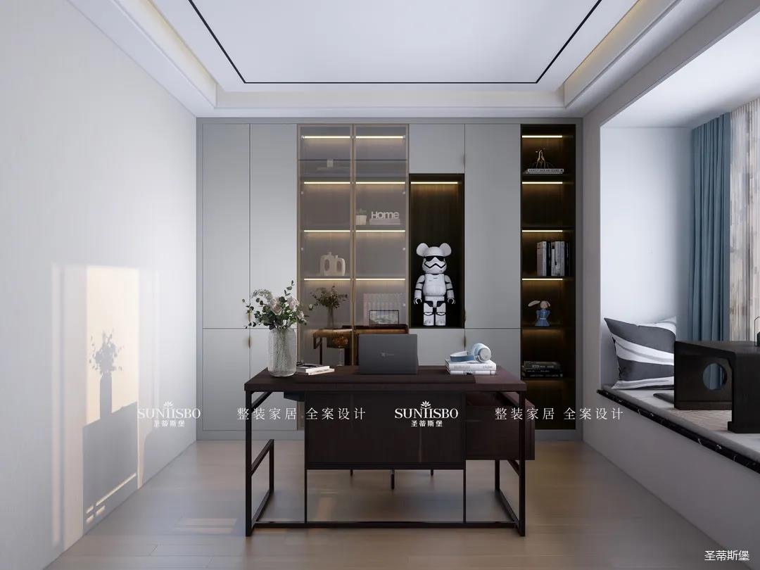 陽光透過窗戶悄然進入,光影浮動間,實木書桌給書房騰出了一個安靜愜意的閱讀空間,偶爾放下書本,徑直探向窗外,慢享陽光里慵懶的味道。